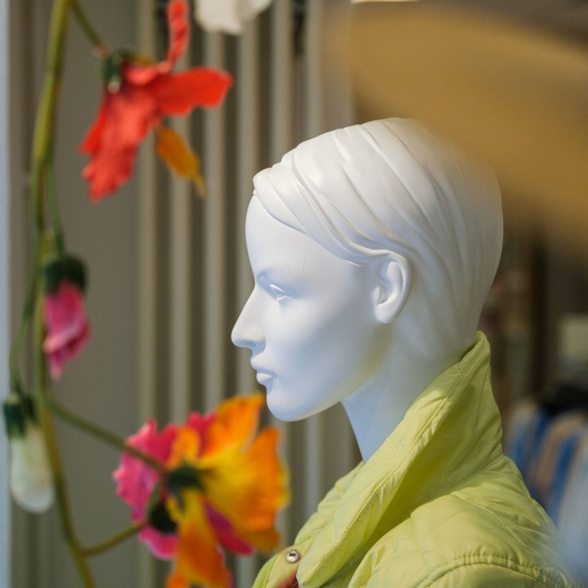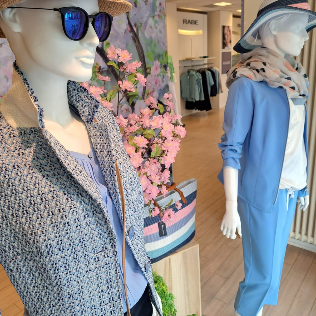 Sie erkennen unser Modegeschäft von weitem an der langen, 9 Schaufenster umfassenden, Ladenfront. Alle Fenster haben hohe Markisen, der einladende Eingangsbereich ist mit einem Handlauf ausgestattet.